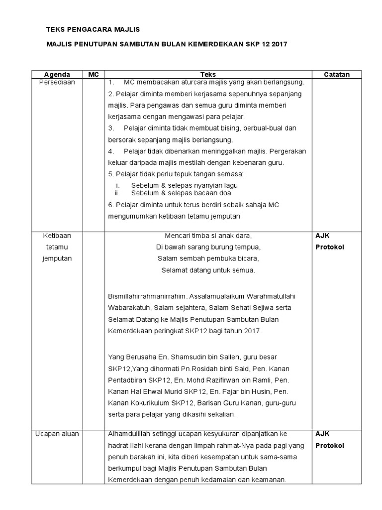 Teks Pengacara Majlis Penutupan Kemerdekaan 1 Pdf