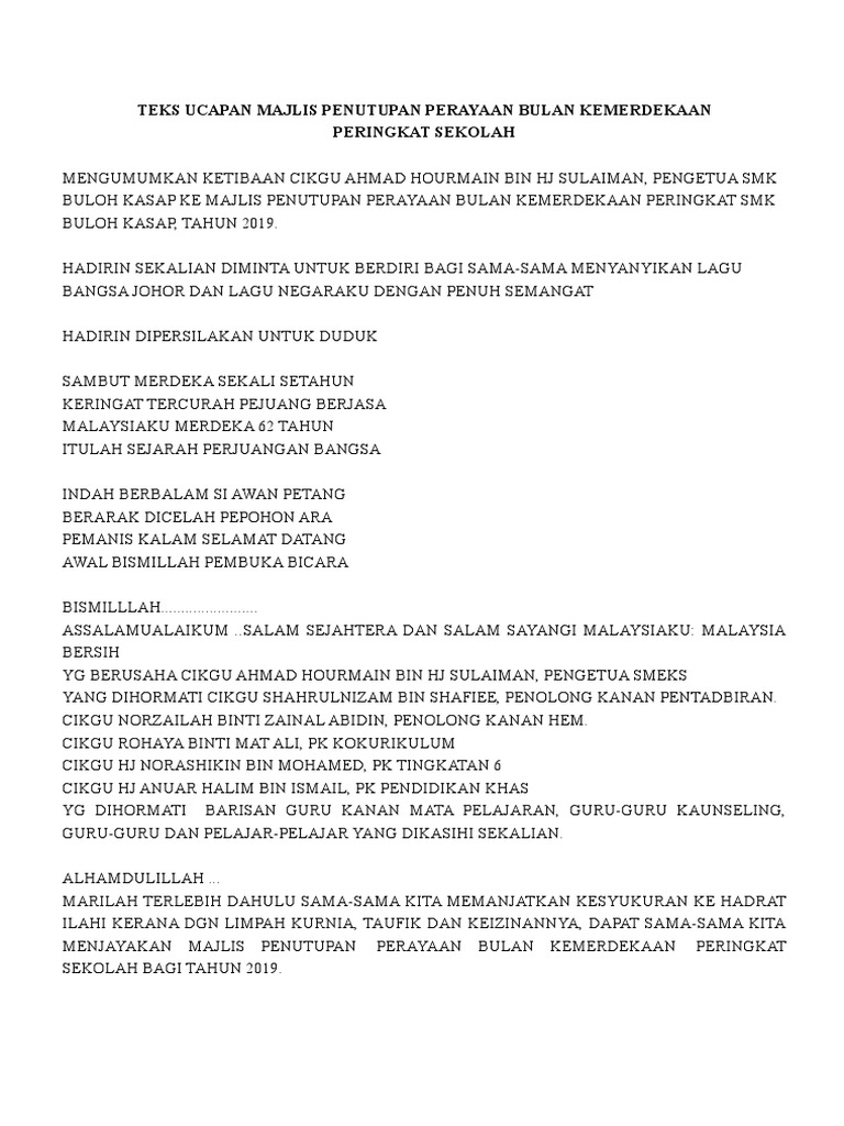 Teks Pengacara Majlis Penutupan Bulan Kemerdekaan Pdf